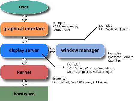 Los Servidores gráficos más comunes que encontramos en prácticamente todas las distribuciones de Linux son x.org y wayland.