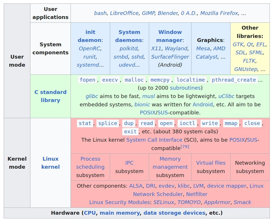 - Un sistema de inicio y manejo de demonios, servicios. El más usado actualmente es systemd