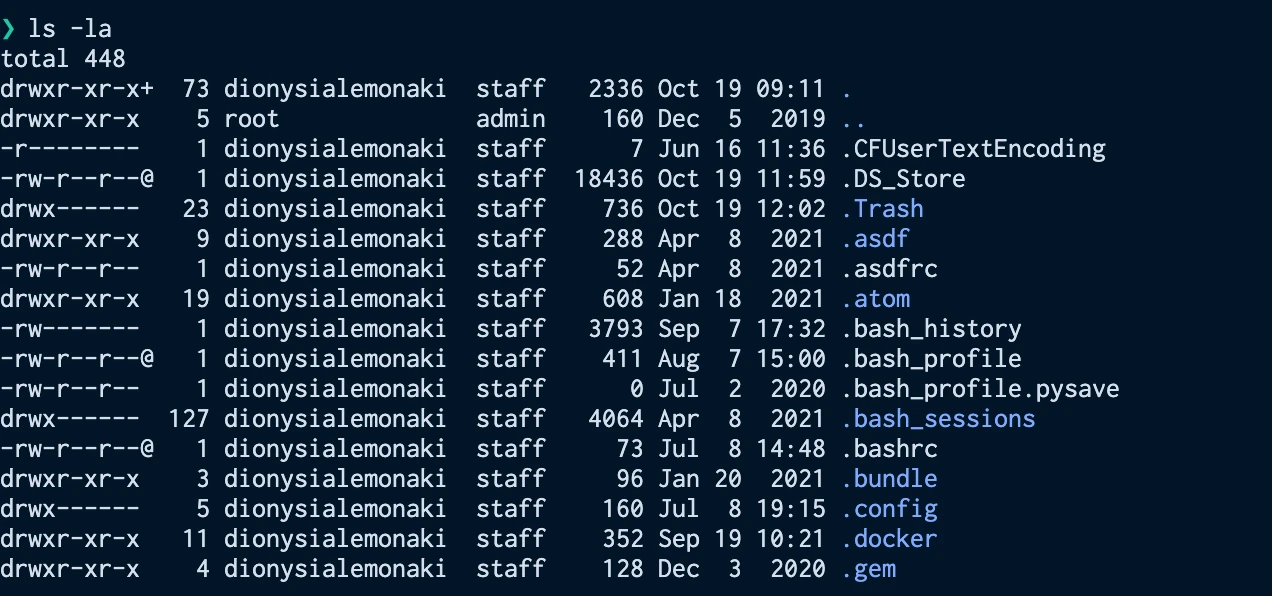 Para poder ver los archivos ocultos podemos usar la opcion ls -a o su versión larga ls --all.