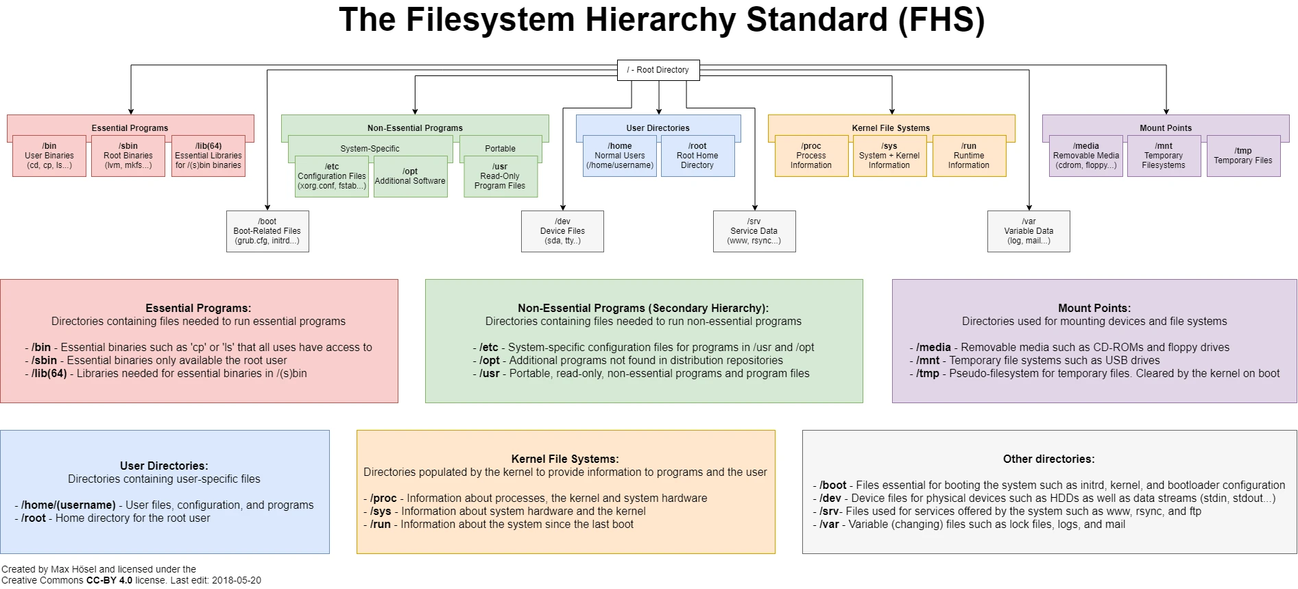 The Filesystem Hierarchy Standard (FHS) is a reference describing the conventions used for the layout of Unix-like systems. It has been made popular by its use in Linux distributions, but it is used by other Unix-like systems as well
