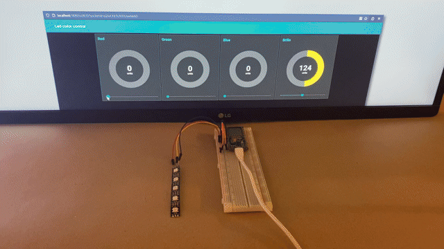 El reto consiste en construir un sistema que nos permita controlar una tira de leds a través de mensajes de red que utilicen el protocolo MQTT. Cuando esto funcione correctamente y seamos capaces de cambiar los canales rojo, verde, azul y el brillo utilizando mensajes enviados desde la línea de comando, habrá que diseñar una interface web para visualizar y controlar sus valores.